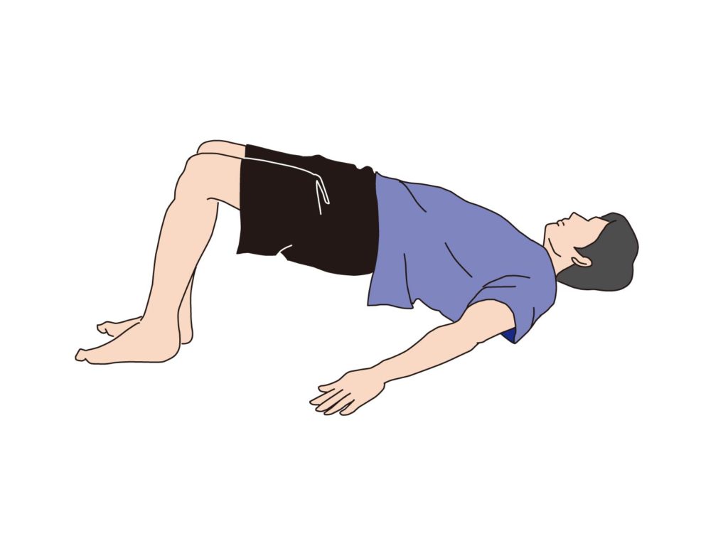 ②足裏で床を押すようにして息を吐きながらお尻をゆっくりと持ち上げる