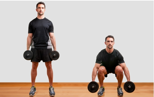 ☑スクワット・ワイドスクワットより負荷を上げる方法としてダンベルを利用したダンベルスクワットがある