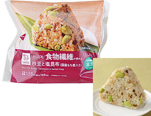 たっぷり食物繊維が摂れる 枝豆と塩昆布おにぎり(国産もち麦入り)
