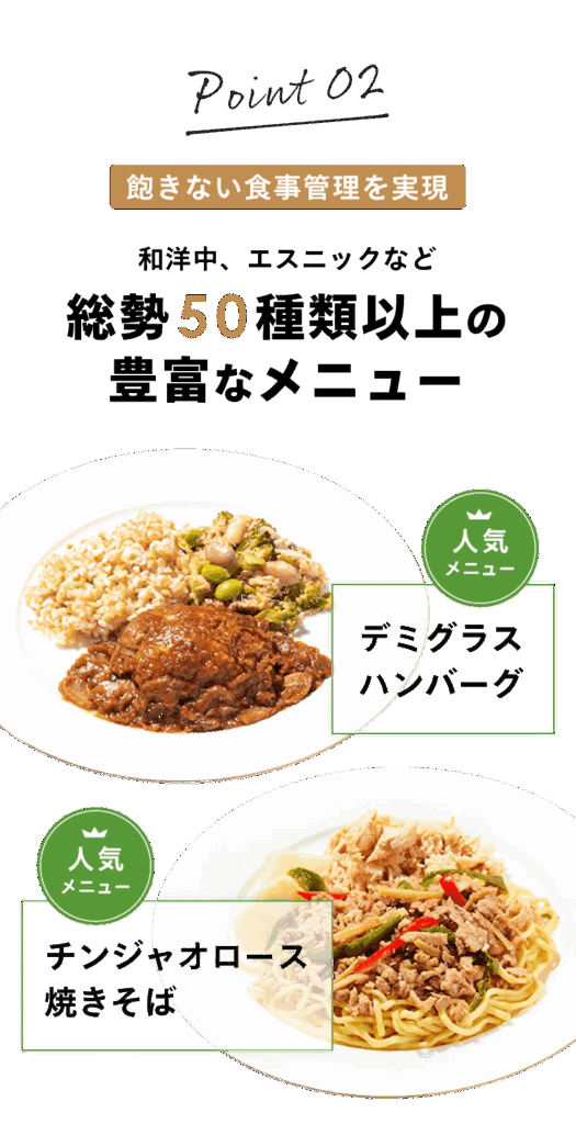 そのため食事管理=辛い・厳しい・続けられない、というイメージを払拭し、メニューを楽しみながら継続できるのです。