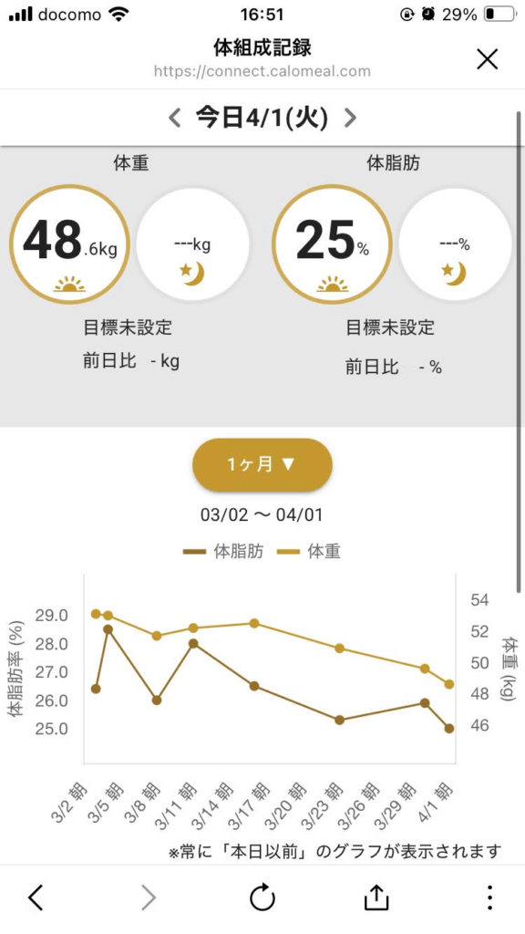 体重や体脂肪率の推移グラフなど体の情報を確認することもできます。またトレーナーさんとチャットをすることもでき、食事などいろいろな悩みを相談することができます。